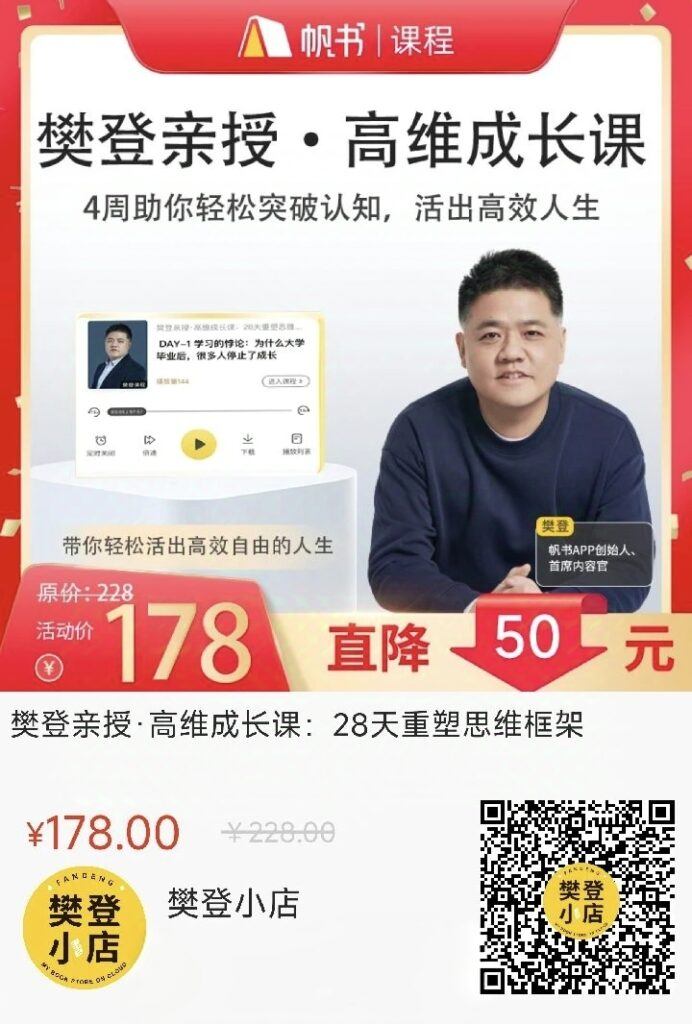 在这个快速变化的时代,认知的迭代速度,决定了我们的人生高度。如果你也想摆脱“低水平努力”,用更高效的思维方式面对生活和工作,不妨试试这门樊登亲授的高维成长课。28天的时间,或许就能让你遇见一个焕然一新的自己。